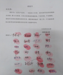 1月22日院党委成立共产党员突击队,全院160余名在职党员全部积极主动加入共产党员突击队。各党支部多名党员及入党积极分子都提交到抗疫一线的请战书,随时待命听候调遣。