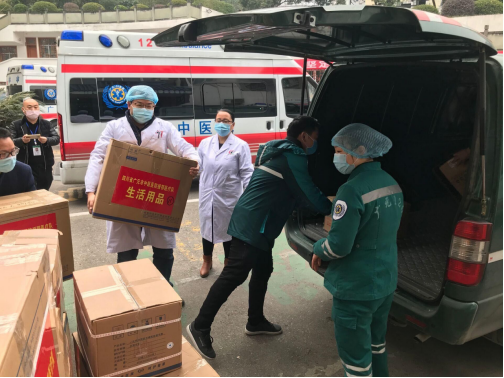 广元市中医院援鄂医疗队于2月9日深夜才抵达武汉驻地,由于走时匆忙,所带防护及生活用品不多。前线的窘境时刻牵动着全院1000多名干部职工的“心”,党委行政紧急协调市指挥部,并拿出全院库存应前线之急。考虑到武汉近期天气较为寒冷,又贴心准备了部分生活用品,当满载包括N95口罩、一次性防护衣、外科手术衣、手套、棉签、方纱、体温枪等医用防护物资和保暖内衣、内裤、暖宝宝、热水袋、防寒马甲等生活用品的专车马达轰响时,看着飞速转动的车轮,干部职工的“心”又飞到了武汉……