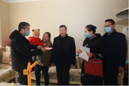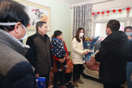 2月11日,党委书记岳先远、副院长汤业军、工会主席王宏、纪委书记母斌代表医院党委行政,带领部分职能科室干部,挨家挨户慰问,为每个队员的家属送去慰问金和礼物,送去组织关怀和医院“大家庭”的温暖。