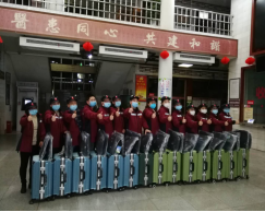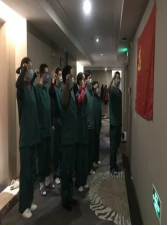 2020年2月9日凌晨,广元市第二批援鄂医疗队队员集结号吹响,大内科9名医护人员,他们秉承“敬畏生命,敬畏职责”的初衷,代表医院出征武汉,站到“逆行”的最前沿,成为逆行路上最美、最可爱的中医人。他们分别是党支部书记杨志林、党员张诚、安永平、白欣灵,入党积极分子王思涵、杨清、谢君,还有青年骨干张素蓉和青年突击队员王羽洁。安永平父亲重病住院,为了更多人的健康,他不能床旁尽孝,毫无怨言。出征时杨志林支部书记代表医疗队宣誓:“健康所系,性命相托,作为一名党员干部,救死扶伤、除人类之病痛是职责所在,定会不负重托,牢记使命,在没有硝烟的战场上展现中医人的责任与担当,坚决打赢疫情防控阻击战!”