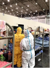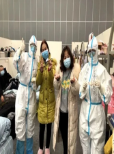 在武汉汉阳方舱医院,支部全体医护人员充分发挥中医特色优势,并把极富中医特色的太极拳、八段锦、呼吸操等治疗带入方舱,极大地降低了重症转化率。同时通过手绘生日蛋糕、折千纸鹤等等为患者舒缓了心理压力。在汉阳方舱医院上空高高飘扬的党旗下我们看到了这些“逆行者”的使命与担当,以忠心诠释初心,用实干践行使命,党旗下留下这些逆行者坚定的誓言:“疫情不退,我们不回!”