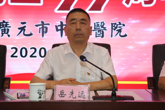 岳书记首先代表医院党委向全体共产党员致以节日的问候,向受到表扬的先进党支部、优秀共产党员、优秀党委工作者表示祝贺。他深情回顾了中国共产党成立99年来的波澜壮阔历程和取得的丰功伟绩,总结了医院一年来党的建设、全面从严治党等工作。他要求全院党员干部职工在思想上、政治上、行动上始终同党中央保持高度一致,增强“四个意识”,坚定“四个自信”,做到“两个维护”。领导干部要切实扛起政治责任,率先垂范,带头落实全面从严治党主体责任和“一岗双责”,切实把全面从严治党各项任务落实落细,扎实推进全面从严治党向纵深发展,真正把管党治党责任落到实处。加快推进公立医院党的建设,准确把握目标任务和要求,以党的坚强领导推动医院高质量发展,为建设辐射川陕甘结合部区域中医医疗中心、四川省中医医疗区域中心努力奋斗!