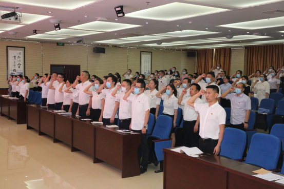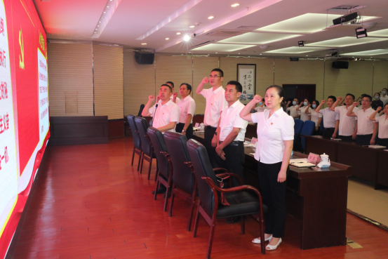 “我志愿加入中国共产党,拥护党的纲领,遵守党的章程……”由党委书记岳先远领誓,全体共产党员重温入党誓词,新入党员集体宣誓,表示誓死跟党走,做党的忠诚卫士。