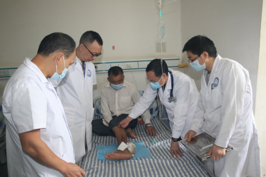 “老师,我管的一个病人伤口老是不愈合,请帮我看看!”“我管的一个病人最近治疗效果不好,请老师帮我看看咋回事?”专家们还深入到东溪镇中心卫生院的病房,对住院在床的危重、疑难病进行查房会诊,提出诊治意见。
