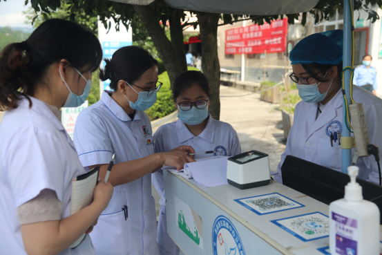 听到广元市中医院的专家要来东溪镇义诊了,十里八乡的群众奔走相告,早早就在义诊点排起了长龙。专家们顾不上休息便立即开始义诊。心血管内科专家张思荣、神经内科专家林涌泉、消化内科专家杨涛、内分泌内科专家张炜、普外科专家温达等医生们详细询问病情、查体、处方,护理专家樊慧、卢春兰耐心细致为群众测血压,解答医学问题和接受咨询,提出健康保健的意见建议。本次义诊活动共接待群众358人次,发放健康教育资料620份,医疗队因热情细致的服务,深受当地群众的好评。