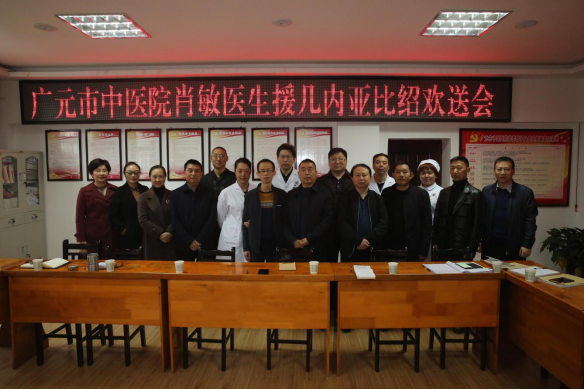 在4月6日医院欢送会上,院领导和科室主任、护士长与肖敏医生亲切话别,对他代表国家和医院出征寄予厚望。党委书记岳先远对肖敏医生远离故土亲人,要求他一定要注意人身安全。同时要求提高政治站位,在援非工作中时时处处展现中国形象和大国担当,要用精湛的医术、高尚的医德,特别要把中医国粹,比如针灸技术发挥好,造福非洲人民,当好健康使者、交流使者、中医文化传播使者,为国争光,为广元市中医院争光。