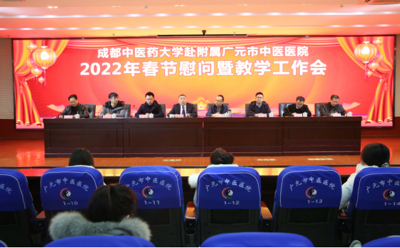 1月26日,成都中医药大学党委常委、组织部部长王军一行代表学校党委到广元市中医院开展春节慰问并召开教学工作会议。党委书记岳先远出席会议相关活动并讲话,党委副书记、院长周骥介绍医院教学工作情况。党委委员、副院长岳良明主持会议。副院长冯成云参加会议。