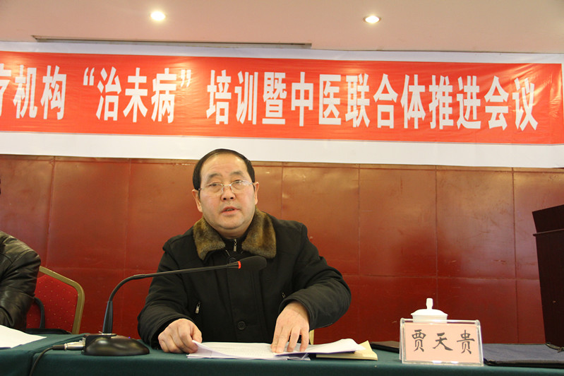 市中医联合体主任委员、市中医院院长贾天贵作工作总结