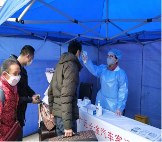 大年三十,当大家都还在家里收看春晚的时候;凌晨4点,当大家还在酣睡的时候,她们早已披星戴月,赶到了站点,守护在那里!隆冬的夜晚和清晨,寒气逼人,老师们早已忘记寒冷,为当地人民的健康守护在人流如织的站台。
