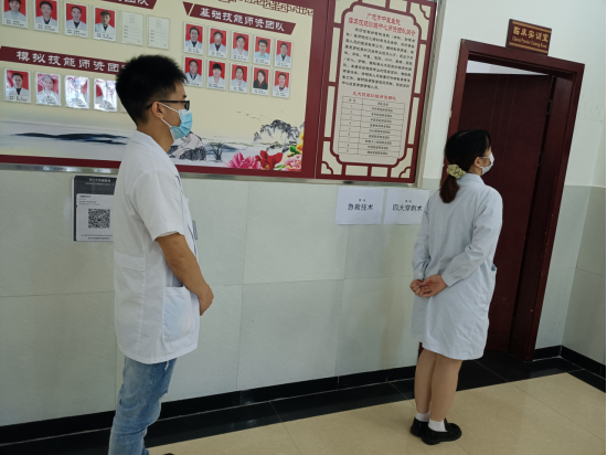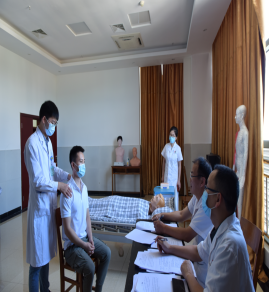 考核分为理论考试及临床技能考试两部分。根据疫情防控的要求,本次理论考试由各个教研室统一组织学员线上答题,教研室指定人员监考。临床技能考试统一在我院技能训练中心进行。采取多站式临床技能考试方式,设置“院前急救CPR”、“四大穿刺”、“中医常用技能(针刺法、火罐、灸法、推拿)”、“中医临床答辩”四个板块进行。每个站点安排相关专业专家2-3名作为考官,对学员进行公平、公正的考核评分。