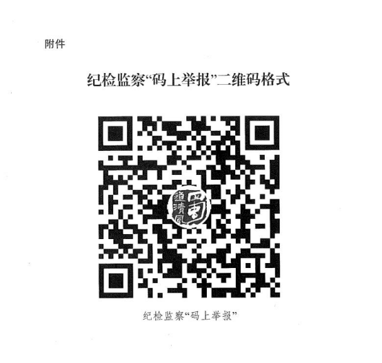 为充分发挥纪检监察机关 12388 举报平台的作用,最大限度方便和服务群众,及时发现、推动解决群众急难愁盼问题,根据省、市纪委监委关于做好纪检监察“码上举报”宣传推广工作文件精神,现将“码上举报”二维码公布于后,请积极推广使用。