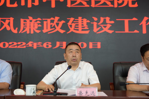 6月20日,广元市中医院召开2022年党风廉政建设工作会。会议深入学习中央、省、市纪委全会精神,贯彻落实省、市卫生健康系统党风廉政建设和纪律作风警示教育会议要求,总结回顾2021年党风廉政建设工作,安排部署今年的重点工作。岳先远同志作工作报告,总结回顾2021年主要工作,安排部署今年工作。会议由党委副书记、院长周骥主持。市纪委常委、监委委员杜先勇到会指导并作专题讲座。