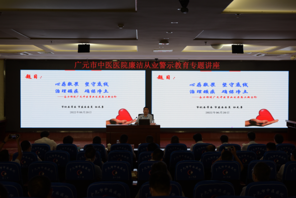 会上,市纪委常委、监委委员杜先勇以“心存敬畏、坚守底线、治理顽疾、确保净土,奋力推进广元中医事业发展再上新台阶”为题作廉洁从业警示教育专题讲座。主要围绕“认清形势,辨识方向,站在历史高度理解职责使命;把握底线,不越雷池,忠于职守避免堕入万劫不复;分清是非,谨慎抉择,一步不慎就可能冰火两重天 顺应时代,奋进爬坡,把三个绝对内化为政治担当”等4个方面,进行了深入浅出的生动讲解,让与会人员在思想上受到一次洗礼。深刻警示教育大家要筑牢廉洁思想防线,心有所畏、言有所戒、行有所为,真正做政治上的明白人,医院发展的开路人,服务患者的贴心人。