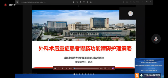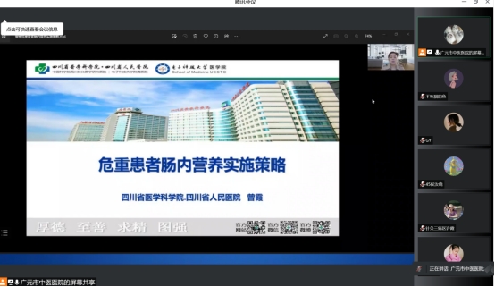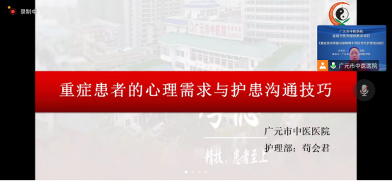 此次培训班采用线上授课,由广元市中医医院副院长岳良明主持了培训班开幕式,并予以致辞,向一直以来关心支持我院发展建设的领导专家表示了衷心的感谢,也对参加本次培训的学院提出了殷切的期望,希望通过此次培训,广大的重症护理同仁,能够深入思考、积极探讨、广泛交流,不断夯实基础护理,实现重症护理质量的持续改进,围绕人民群众的健康需求,构建全面、优质、高效的重症护理服务体系。