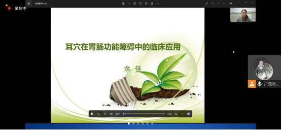 广元市中医医院门诊办主任余佳从耳穴埋豆的定义、选穴、临床应用等方面向大家分享耳穴在胃肠功能障碍中的临床应用,提升了重症护理人员的中医特色技术的操作能力。