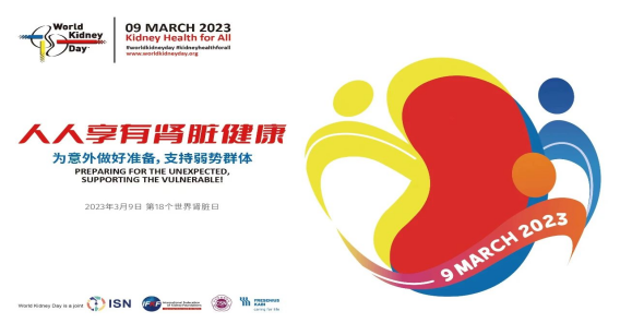 2023年3月9日,是第18个世界肾脏日,今年的肾脏日主题是——”人人享有肾脏健康,为意外做准备,支持弱势群体”。