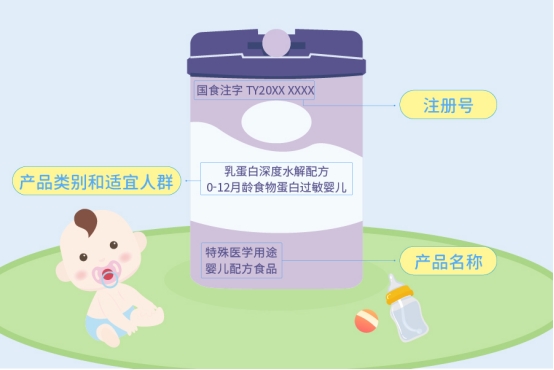 由于我国对特殊医学用途婴儿配方食品实施注册管理,审核批准后的产品都会有一个独一无二的注册号为“国食注字 TY+4位年号+4位顺序号”,其中 TY 代表“特殊医学用途配方食品”。注册号会标在产品正面包装上。