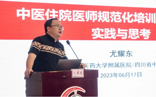 尤耀东对本次培训会议的开展表示祝贺,从临床教学的意义、中医住培高质量建设的策略与方法、中医住培岗位胜任力要素、建设与实践以及由此带来的思考等三个方面为大家进行了精彩授课。