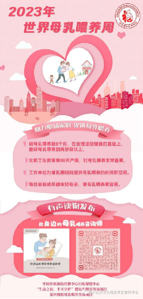 2023年8月1日-7日是第32个世界母乳喂养周,今年的宣传主题为“助力职场家庭,促进母乳喂养”。
