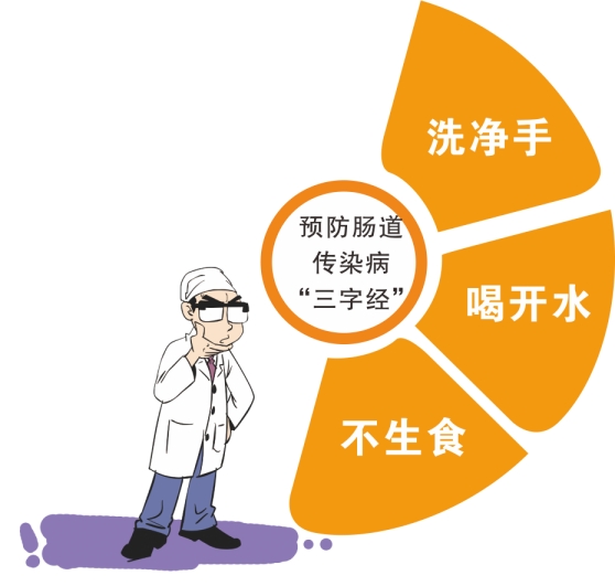 1.注意个人卫生,饭前便后、外出后及时洗手;不喝生水、不吃生冷食物。