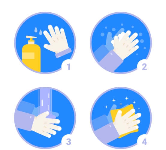 1. 流动水洗手,取适量洗手液或肥皂液均匀涂抹至整个手掌、手背、手指和指缝,按照“七步洗手法”认真揉搓双手的所有皮肤,尤其是指背、指尖、指缝之间和皮肤皱褶。