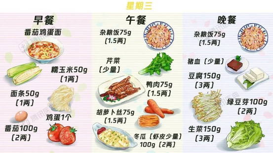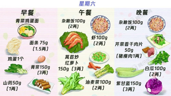 2.蔬菜:早餐50~100克左右,中晚餐各250克左右。家里可以准备一个小的电子秤,大概称量一下。