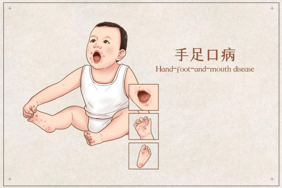 由柯萨奇病毒、肠道病毒71型等病毒引起的以手、足、皮肤疱疹和口腔粘膜溃疡为主的传染病。