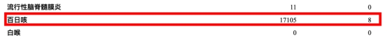 其中,1月报告百日咳15245例,其中死亡5例;2月报告百日咳17105例,其中死亡8例。