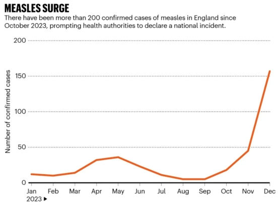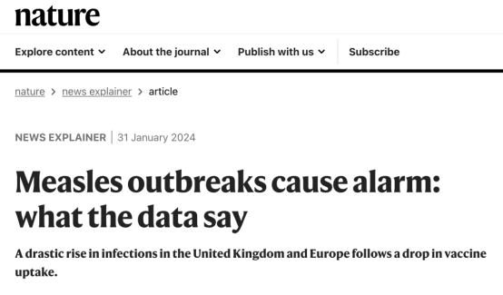 2024年1月31日,Nature发文称:“欧美地区陷入麻疹危机”。