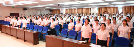 大会在雄壮的国歌声中拉开帷幕。党委书记周骥带领新党员宣誓,其他党员重温入党誓词。铿锵有力的誓言彰显了全院党员干部对党的无限忠诚和为中医药事业奋斗终身的坚定信念。