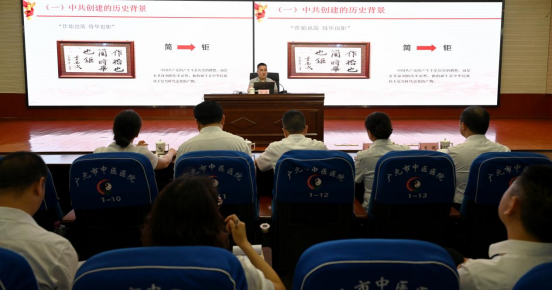 为庆祝中国共产党成立104周年,深入学习贯彻习近平新时代中国特色社会主义思想,激励党员干部以创新实干助推医院高质量发展,6月27日下午,广元市中医院召开庆祝中国共产党成立104周年大会,并邀请市委党校教授讲专题党课。党委书记周骥出席会议并讲话,党委副书记、院长陈兵主持会议,在家院领导及全体党员、预备党员、入党积极分子齐聚一堂,重温党的光辉历程,共庆党的生日。