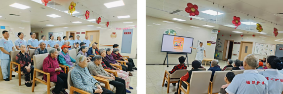 各病区组织医护人员及老人观看了阿尔茨海默病主题公益宣传片。影片以真实的视觉展现了认知障碍老人的内心世界和家庭的温情陪伴,让大家更深刻地理解了“理解、包容与专业照护”的真正内涵。