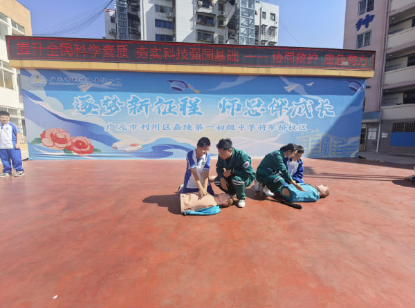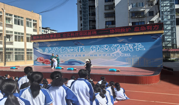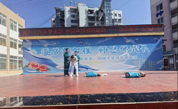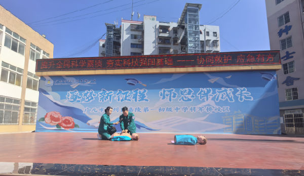 9月24日上午,广元市中医院急诊科、广元紧急救援中心走进广元市利州区嘉陵第一初级中学将军桥校区,为教职工培训应急救护知识,增强教职工的安全意识和应对突发事件的能力,推进平安校园建设。