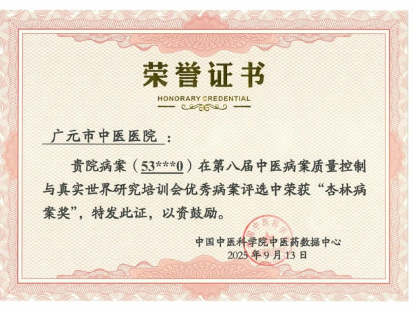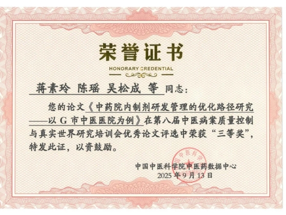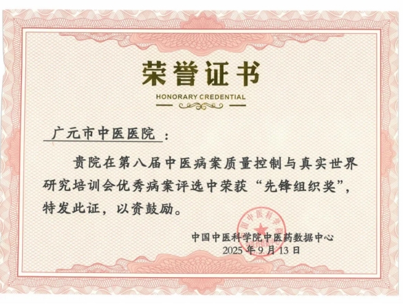 医院凭借扎实的病案工作基础和高质量的学术成果,荣获“先锋组织奖”,充分体现了我院在中医病案规范管理与研究应用方面的综合实力。