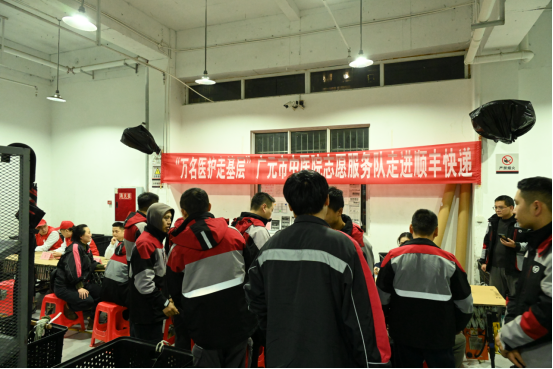 11月10日晚,广元市中医院“万名医护走基层”志愿服务队走进顺丰物流园,为“城市骑手”送去暖心关怀与专业医疗咨询。
