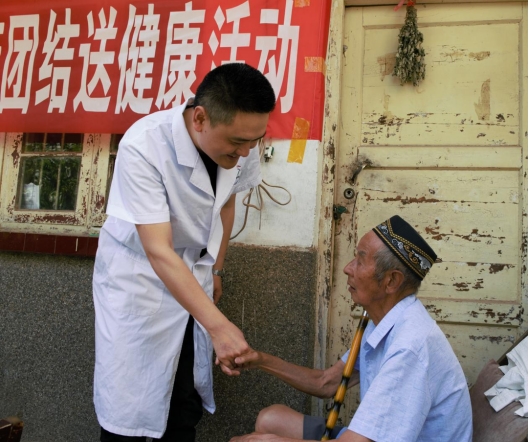 6月29日,广元市中医院普通外科副主任张洵在利州区东屏社区四组参加医院组织的七一前夕走进回民村送健康活动,为王开成老人义诊时,专门为老人制订了健康方案。老人为张洵的真诚所感动,紧紧地拉住张洵的手,激动的久久说不出话来。