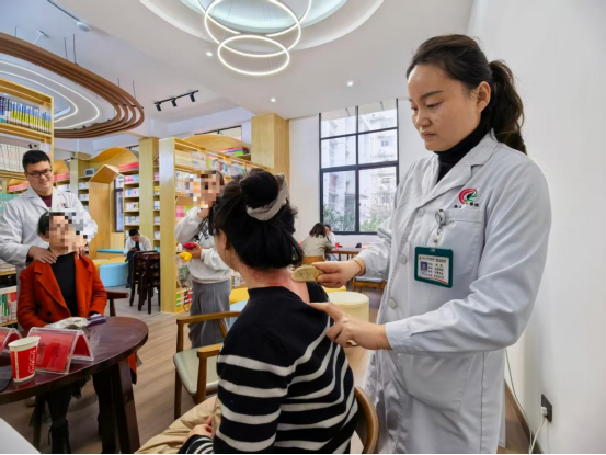 在中医药特色诊疗体验区,现场气氛热烈。在专业操作下,耳穴埋豆的精巧刺激以及推拿刮痧的立竿见影,让参与体验的老师们赞叹不已。“肩膀轻松多了,中医真是太神奇了!”一位刚体验完刮痧的女教师高兴地说道。大家纷纷表示,这样的活动不仅让她们近距离感受到了中医药的独特魅力,更切身体会到了“治未病”的健康理念。