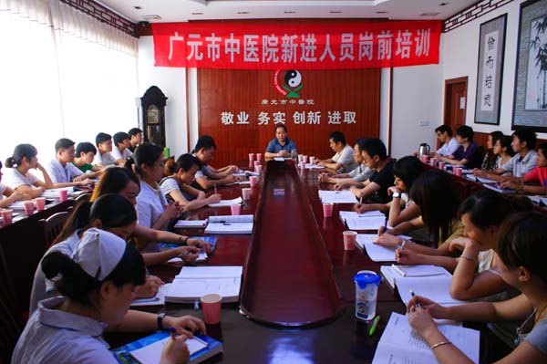 7月25日下午,“广元市中医医院2011年新进人员岗前培训班”开班仪式在五楼中会议室举行。贾天贵院长、岳先远副院长、人事科、医务科、护理部等职能部门科长与36位新员工亲切见面,岳先远副院长作了岗前培训动员,并提出了纪律要求。
