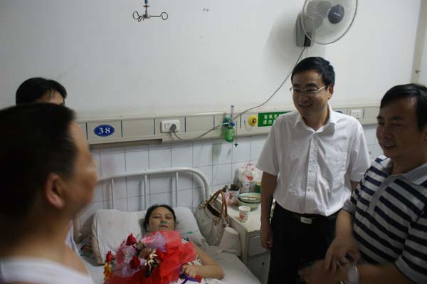 2010年7月27日夜,副市长、市公安局局长余健率领市区两级分管领导、安办、应急办人员等慰问了因栖凤路游泳池氯气泄露正在我院住院的中毒人员,表达了党委政府的关怀,向住院群众送去了鲜花和水果。副市长、市公安局局长余健还在内一科医生值班室召开了会议,指示市卫生局和医院要全力救治中毒人员,各级各部门要做好安抚工作,保持社会稳定。