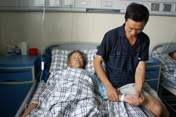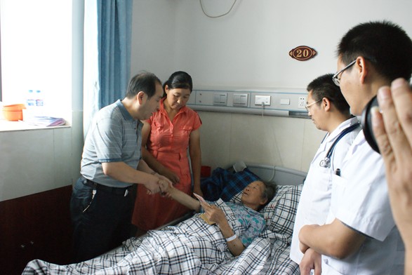 饶学英是“华山背夫”刘道满的母亲,因身患直肠癌正在市中医院接受化疗。刘道满言语不多,他不知道用什么语言表达自己的感激之情,只是拉着贾院长的手连声说“谢谢,谢谢”。