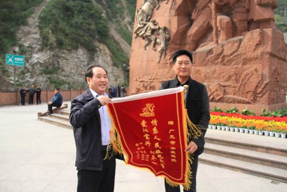 10月21日,广元市中医院最后一批医疗队撤离雅安“4.20”芦山地震灾区宝兴县中医院,宝兴县卫生局局长代表中共宝兴县委、宝兴县人民政府把一面绣有“情系人民救死扶伤,爱洒宝兴无私奉献”的锦旗送到院长贾天贵手中。至此,广元市中医院顺利完成对宝兴县中医院为期半年的对口支援任务。