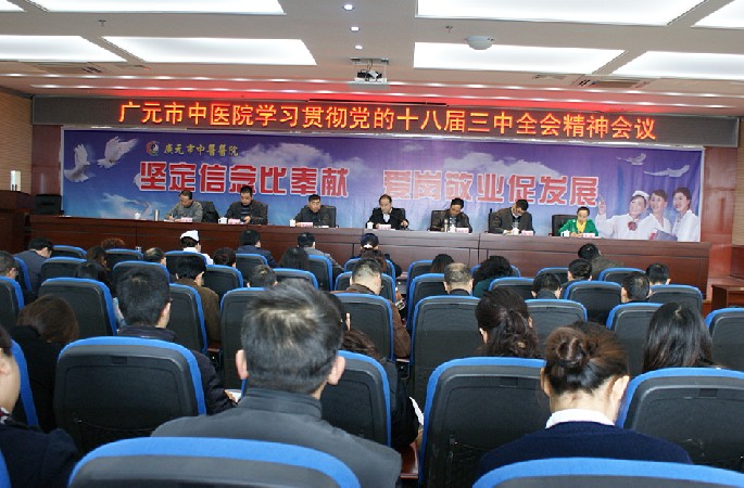 院长贾天贵指出,党的十八届三中全会是我国改革开放新的重要关头召开的一次重要会议,是新形势下坚定不移贯彻党的基本路线、基本纲领、基本经验、基本要求,坚定不移高举改革开放大旗的重要宣誓和重要体现,是全面深化改革的又一次总部署、总动员。贾天贵要求全院干部职工务必认真学习十八届三中全会精神,深刻领会精神实质,坚定必胜信心,全身心投入医院的改革与发展。进一步提高医疗技术水平,改进服务,强化竞争意识、机遇意识、责任意识、服务意识,大胆创新,发挥好中医特色和优势,让中医药更好地造福于人民。