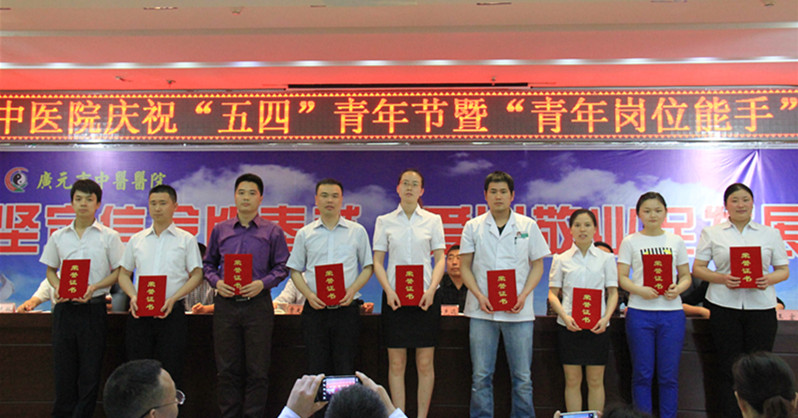 表彰大会在斗志昂扬的国歌歌声中拉开了帷幕。医院团委负责人就2014年工作进行了总结,并安排部署了2015年工作。党委书记岳先远宣读了医院关于对9名获得“青年岗位能手”的职工进行表彰的决定。