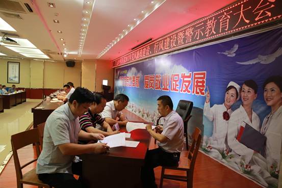 党委书记岳先远还分别与班子成员、药剂、临床等关键岗位负责人签订了《党风廉政建设责任书》和《行风建设责任书》。会后,全体参会成员观看了警示教育片。
