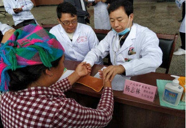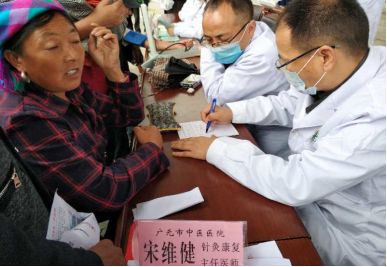 9月12日,大凉山腹地的凉山州金阳县索玛广场,广元市中医院大型义诊活动正在这里举行。彝族同胞们奔走相告、心怀感激,向义诊广场聚来。由院长张欣带队,内科专家宋维健、杨志林,护理专家晏海波、李桂兰等有条不紊,问诊、把脉、查体、量血压、指导用药、制定治疗方案、进行健康知识宣讲,周到细致,让彝族同胞们倍受感动,嘴里不停向身穿白大褂的医务人员说着,有的还竖起了大拇指。当天义诊活动共接待彝汉群众200余名,发放健康宣教资料500余份。
