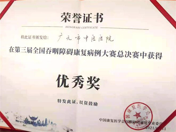 在10分钟的现场病例汇报比赛中,广元市中医院3名选手沉着迎战,向来自全国各地的同行和在线观看的16万观众展示了中西医结合治疗吞咽障碍的优势,现场和线上反响强烈,最终喜获优秀奖。