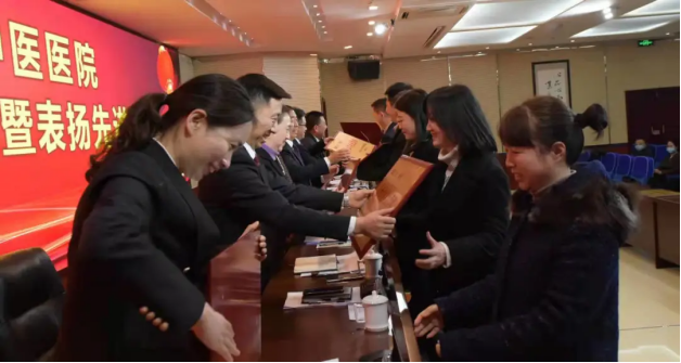 医院领导分别为2021年在业务技术、疫情防控、科研教学等方面做出突出成绩的先进集体和优秀研究生导师、SCI论文作者等先进个人颁发奖牌、荣誉证书。