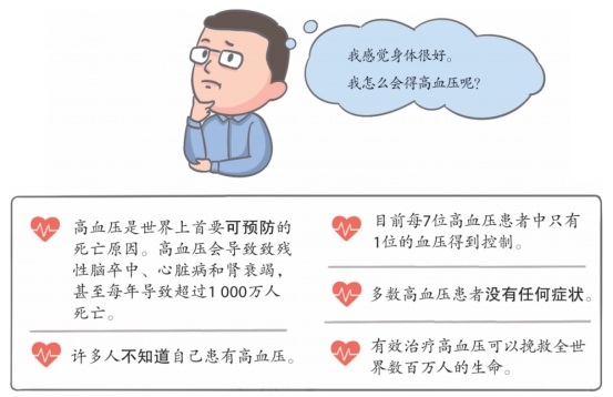 高血压是我国患病人数最多的慢性病,超过 2.7 亿,是城乡居民心脑血管疾病死亡主要的危险因素之一。高血压是可防可控的,但目前高血压的知晓率、治疗率、控制率仍然较低。